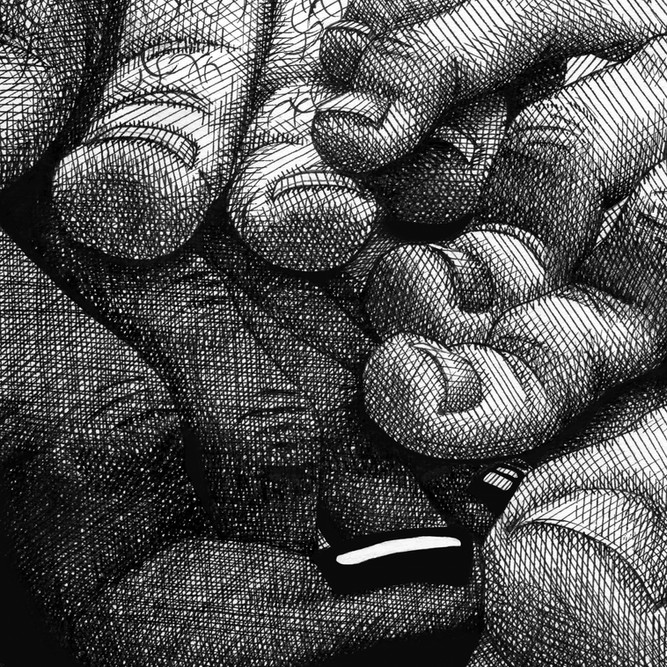 In deze tekening zijn er veel tenen. Lange tenen. Allemaal verschillende soorten tenen. En al die verschillende tenen trappen op elkaar. De persoon in het midden draagt een T-shirt met een vredesteken. Hij bedoelt het goed, maar hoe hard hij ook probeert om niemand op de tenen te trappen, toch gaat het gebeuren: het is onvermijdelijk. Deze tekening gaat over het Nederlandse gezegde 'lange tenen hebben', wat betekent dat iemand makkelijk op zijn tenen wordt getrapt en dus snel beledigd is.